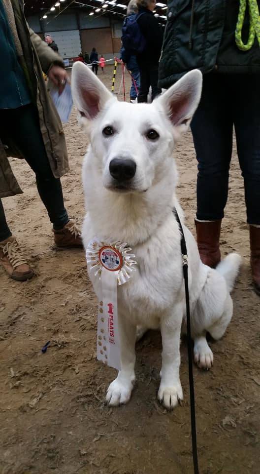 Lupa is tijdens de Clubmatch van de ZWHVN (12-11-17) Beste teef van de jeugd klasse geworden. Ze deed het super goed. Jammer dat het wachten zo ontzettend lang duurde. Ik merkte duidelijk aan haar dat de vermoeidheid erin zat. Haar oren gaan dan wat hangen en ze staat dan niet zo mooi statig rechtop. Maar des ondanks heeft ze zich van een hele goede kant laten zien en wist weer een mooie 'Uitmuntend' te behalen.
