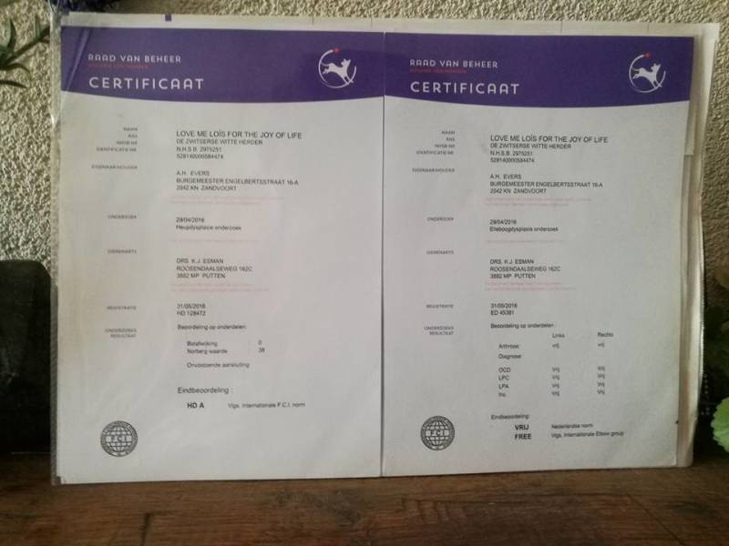 Op 9 juli 2017 is Diva, Love me Loïs for the Joy of Life, goed gekeurd voor fokdoeleinden door de rasvereniging RZWH.