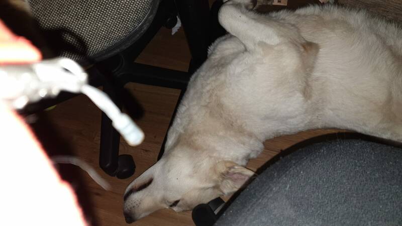 Vaste logé aan huis. Het is een Hollandse Herder pup van mijn zus. Door de weeks zal hij regelmatig hier verblijven en ons gezelschap houden. Weer een leuke en gezellige uitdaging. ;)