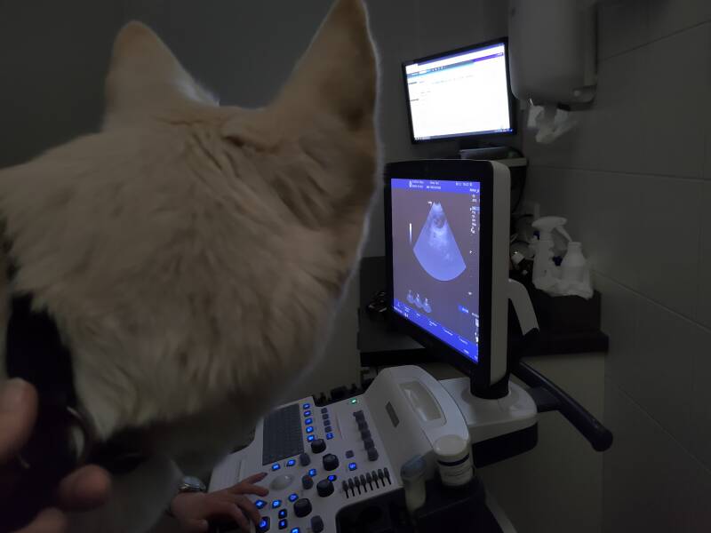 We mogen ons gaan voorbereiden! De dierenarts zag al vrij snel het eerste vruchtzakje. Diva is zwanger! Helaas na lang zoeken kon ze maar 2 a 3 vruchtzakjes vinden. Natuurlijk is een echo absoluut geen garantie betreft het aantal, maar dát ze zwanger is, was duidelijk!