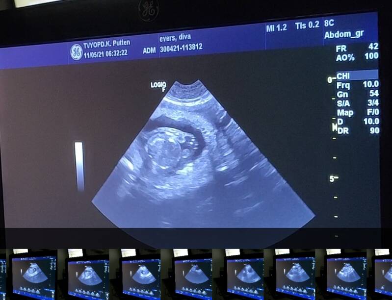 Het zal geen groot nest worden waarschijnlijk, maar er zijn sowieso 4 verschillende vruchtzakjes gespot op deze (eigenlijk veel te vroege) echo! We zitten nu op dag 25 dus het was vrij lastig om de embryo's goed in beeld te krijgen. Maar dát ze zwanger is, is zeker!
