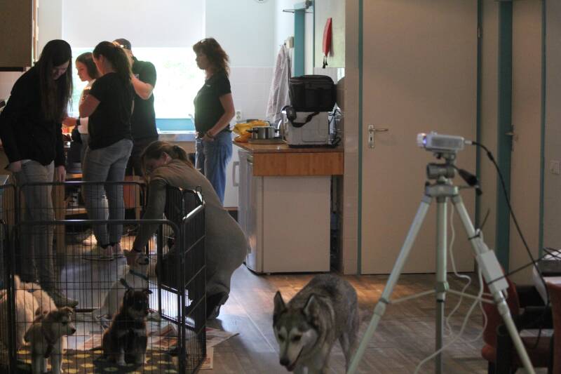 Daarna is er tijd om uitgebreid onderling te kletsen met andere toekomstige baasjes en uiteraard tijd om met de pups te knuffelen. Naast de Stoethoeve is een weiland waar we (met goed weer) even terecht kunnen om met de pups te spelen.