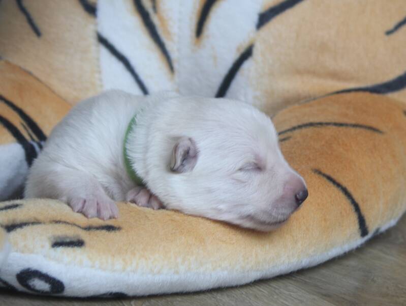 De pups zijn al weer een week oud en inmiddels hebben ze allemaal hun geboortegewicht verdubbeld!