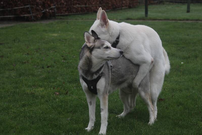 Juna is een 5 jarige kruising Zwitserse witte herder x Husky. Dit wordt ook wel een F1 Outcross genoemd omdat het een bewuste combinatie is die als doel heeft om op de lange termijn weer terug te fokken naar het oorspronkelijke ras 'De Zwitserse Witte Herder".