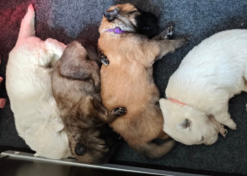 Hoewel de eerste 4 al zijn vertrokken, zijn wij nu nog lekker druk met de laatste 4 pups. Na komend weekend zal ook Dubi (Bob) en enkele dagen later Ruby vertrekken naar hun nieuwe gezinnen. Als laatste vertrekken Javi (Odin) en Bazu. :) Dus daar kunnen we nog een weekje langer van genieten!