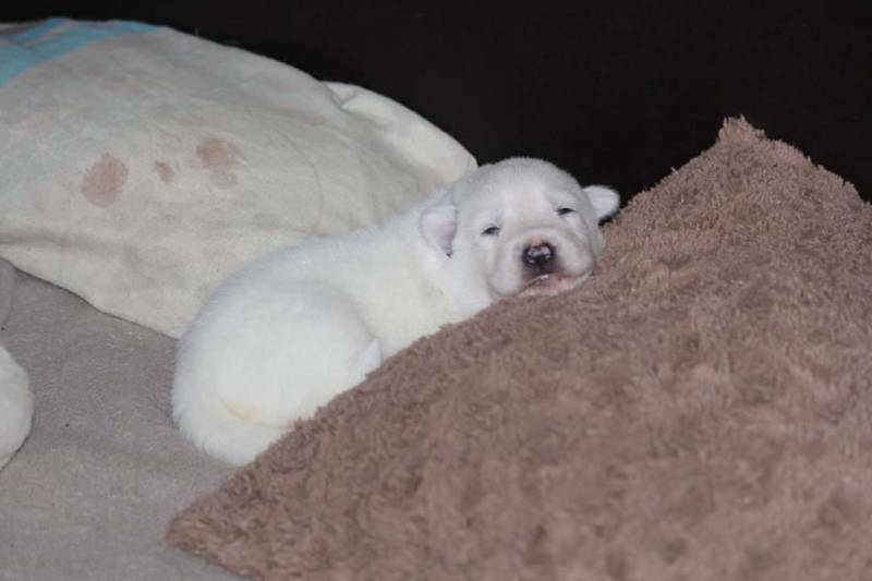 Vrijwel alle toekomstige baasjes hebben inmiddels een afspraak ingepland om op kraambezoek te komen. De eerste 10 dagen zijn goed verlopen en inmiddels hebben enkele pupjes al hun oogjes op een kiertje gezet. Ze wegen inmiddels rond 1 kilo en beginnen al steeds vlotter rond te kruipen door de werpkist.