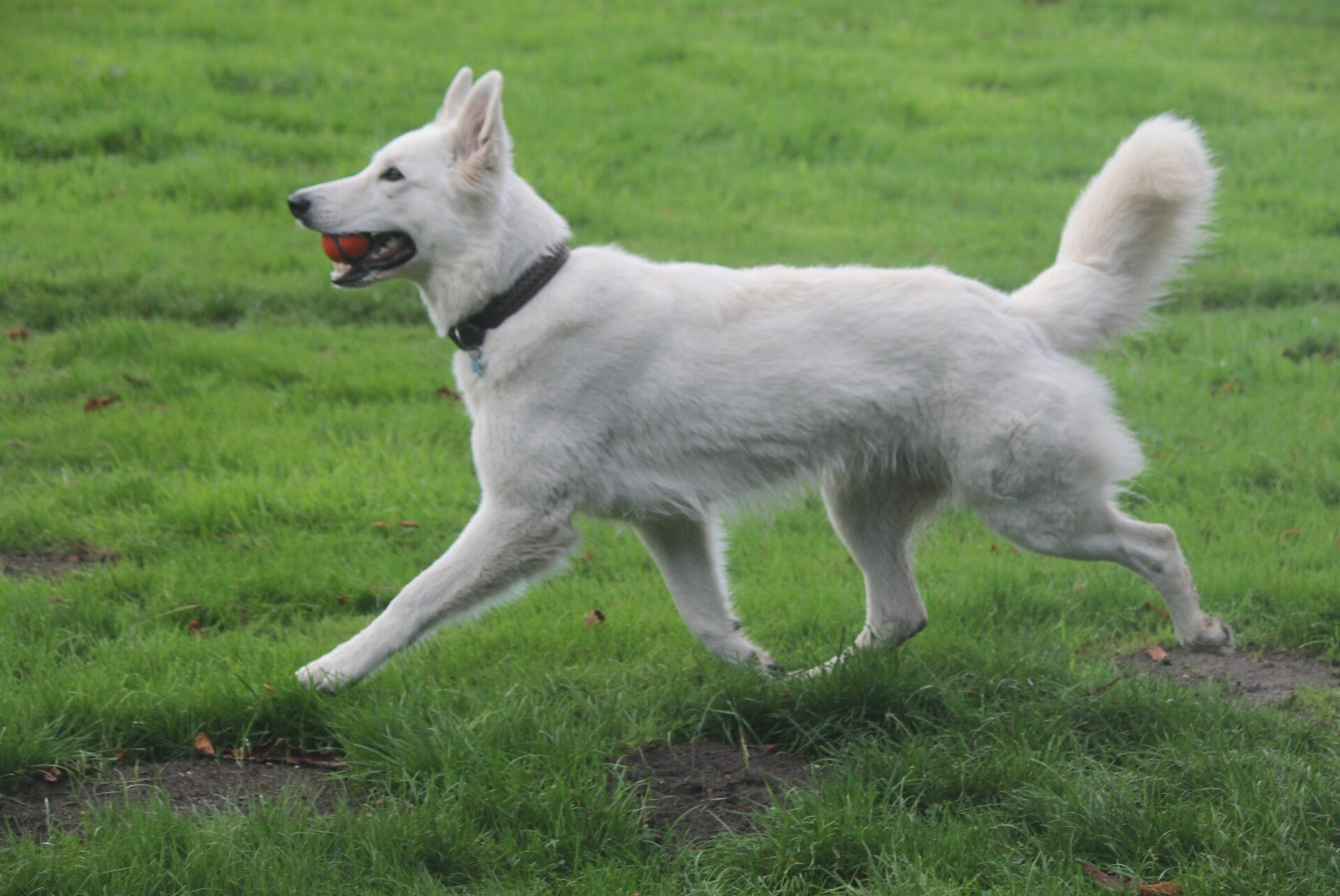 Gaia is een Zwitserse Witte Herder afkomstig uit Servië. Gaia is echt een zeer rastypische herder. Ze is nieuwsgierig met een gezonde dosis terughoudendheid. Ze is waaks en zal van zich laten horen als ze onverwachts wordt benadert, maar ze is absoluut niet uit op een conflict en gaat dit eerder uit de weg. Haar blaf is dus slechts een signaal waarmee ze haar omgeving alarmeert. Ze is heel baasgericht en vindt het fijn om samen te wandelen en te trainen. Ze leert onwijs snel en heeft er ook echt plezier in! Echt een baasgericht hondje. Thuis kruipt ze dan ook graag tegen haar baasjes aan. Gaia woont momenteel bij Ferd en Sylvia en blijft dus verbonden aan onze kennel.