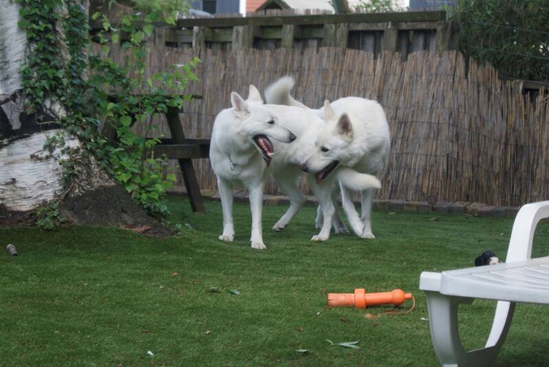 Op zondag 16 juli is de bevalling begonnen. Kyra heeft er lang over gedaan en helaas heeft een pup het niet gehaald, maar de over gebleven 5 pups maken het gelukkig heel goed! Het zijn 4 reuen en 1 teefje.
