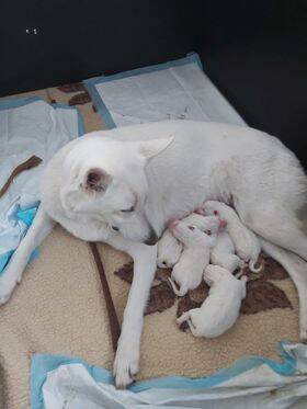 Kyra is een fantastische moederhond en haar melk is goed opgang gekomen.
