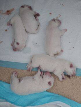 De eerste week is goed verlopen. Alle pups zijn flink gegroeid en maken het goed.